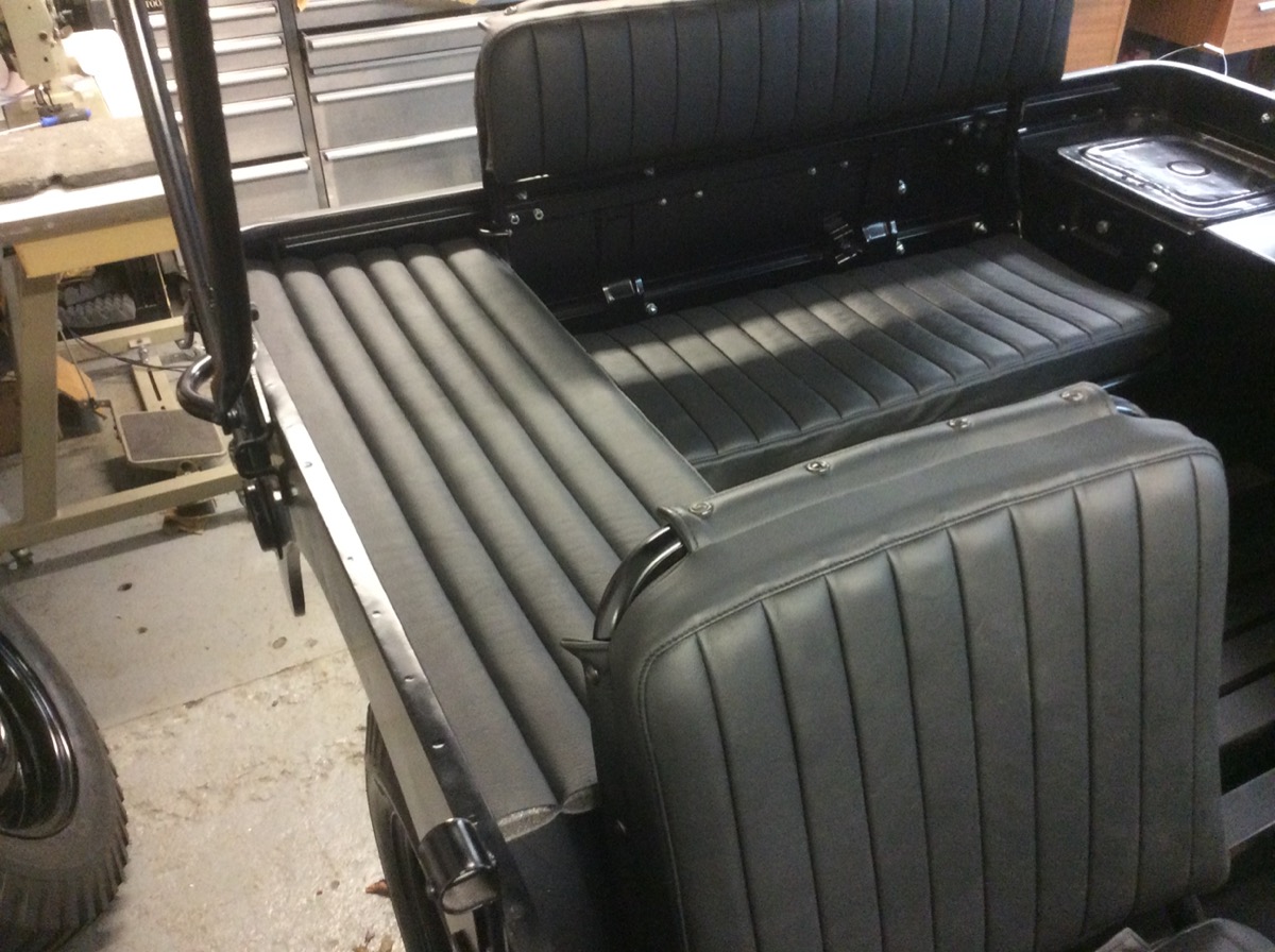 Customised from drab green to Black and Chrome, the interior was retrimmed in black leather and the hood completely remade by hand. The dials were customised in to “Brietling” yellow and a “Wagmann/Brietling clock from a 1960’s American jet fighter added.